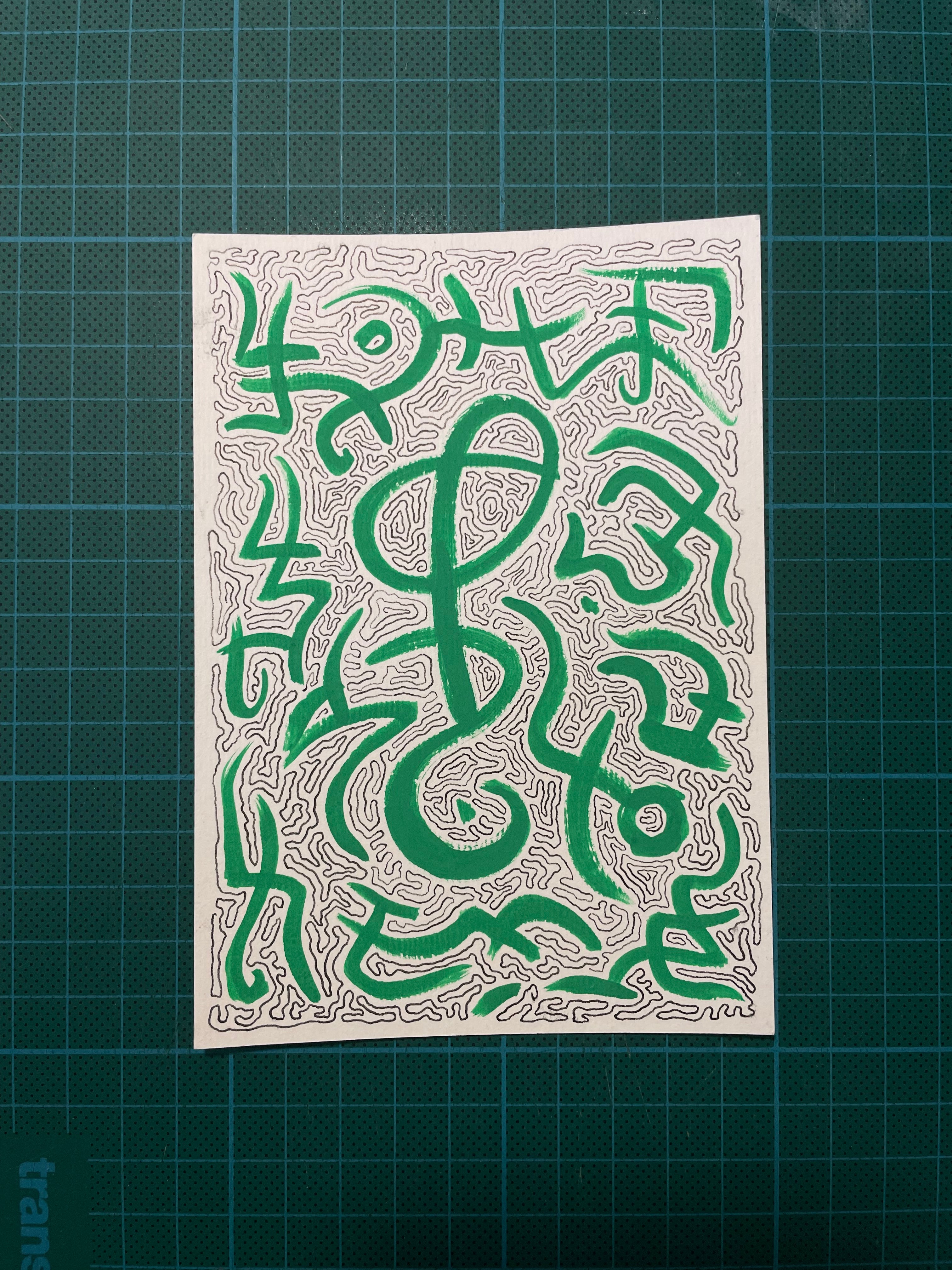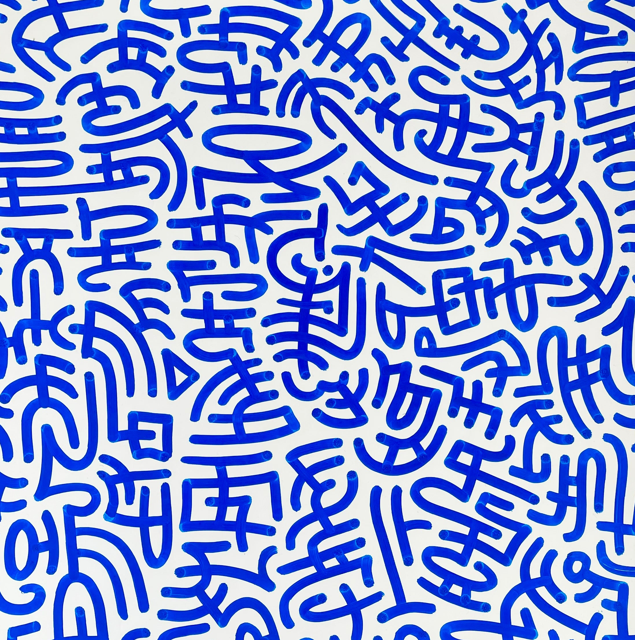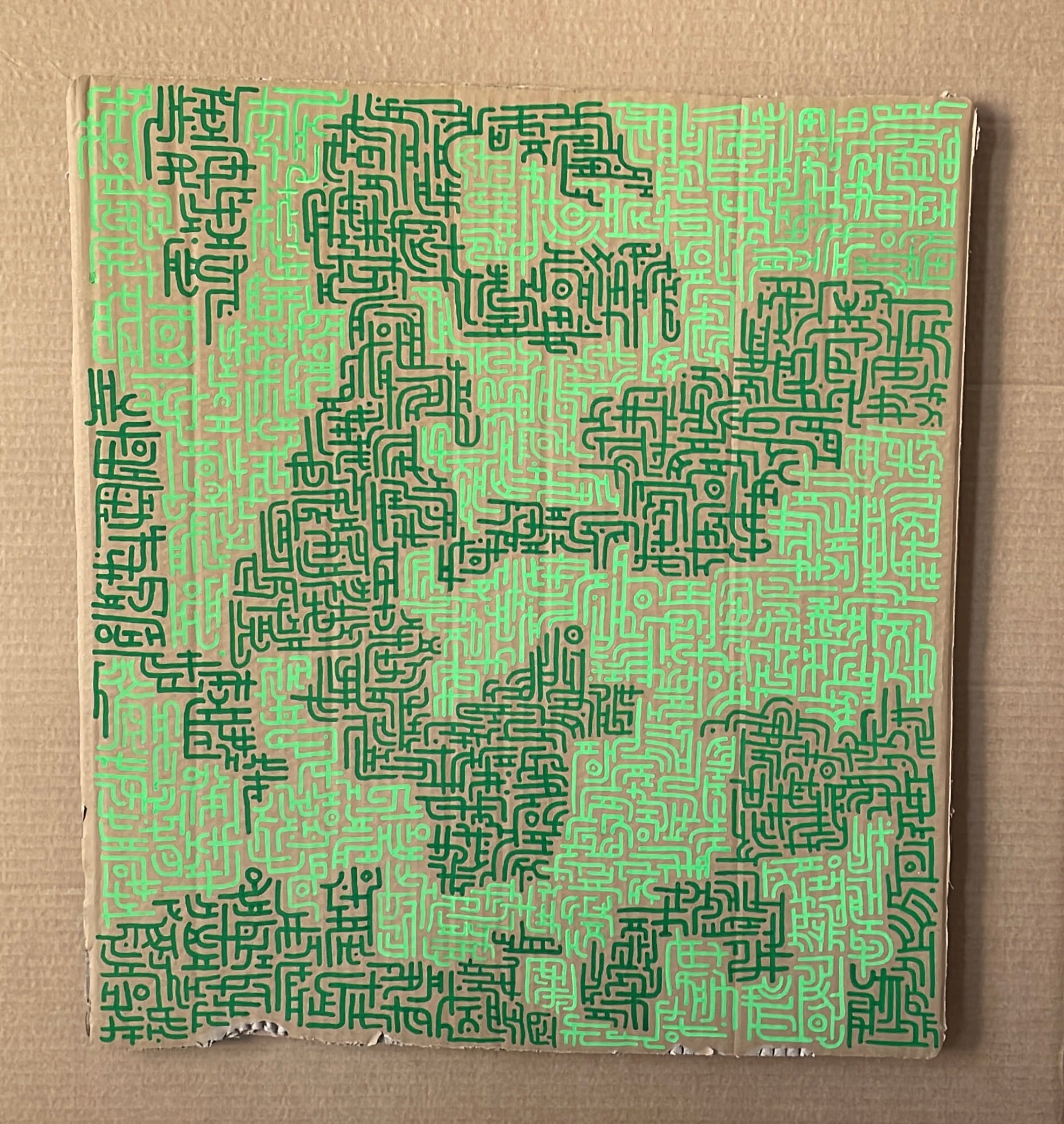 My work lives in that space. I create symbolic compositions that resemble language: familiar enough to invite interpretation, foreign enough to resist easy resolution. The goal is not to deliver a fixed message, but to activate your meaning-making machinery and to invite questions like: